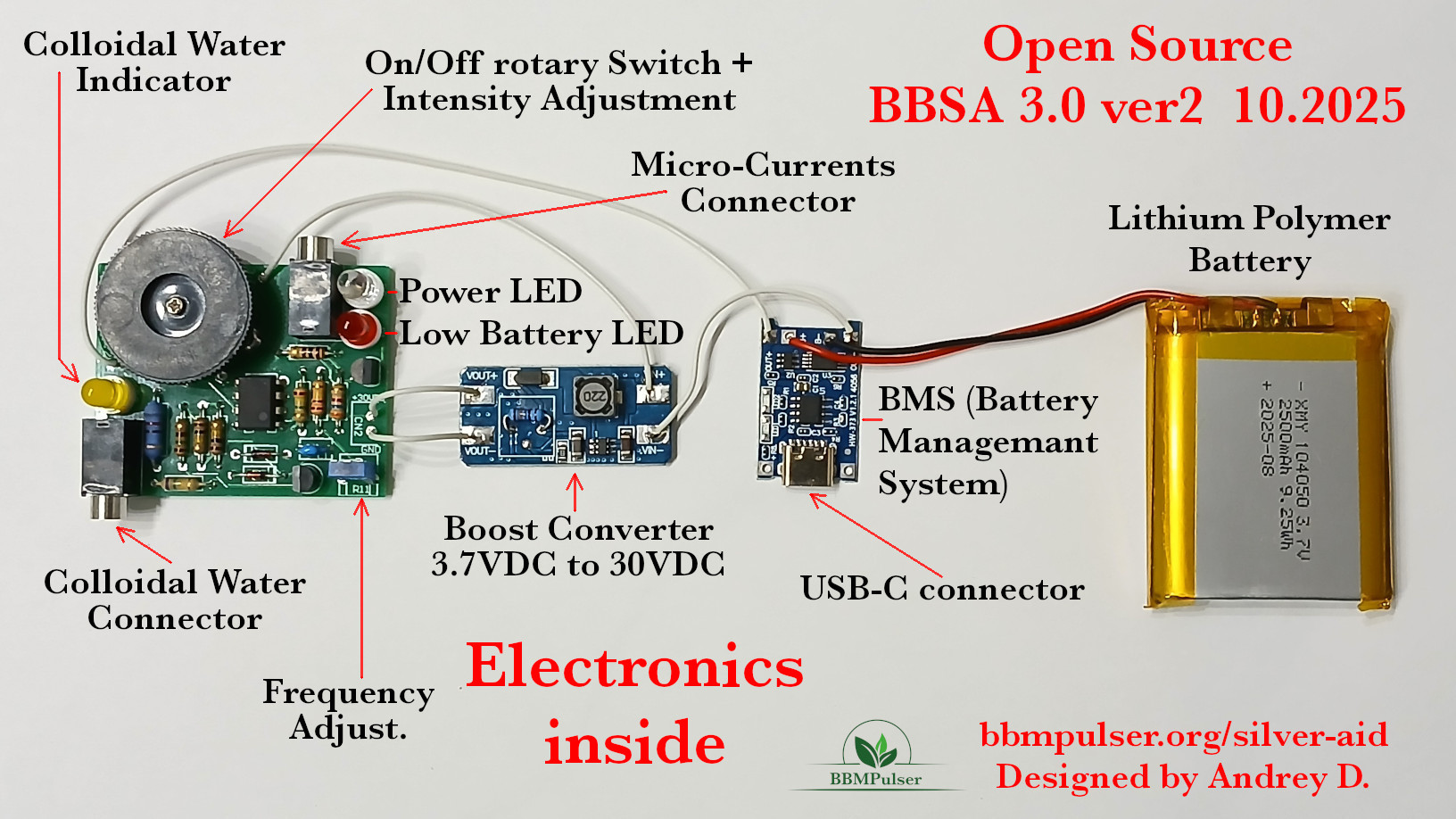 BBSA 1.0 Rev 1.2 (download .pdf .odt)BBSA 1.0 Silver Aid / Colloidal Generator kit price – $139.00, free shipping in USA